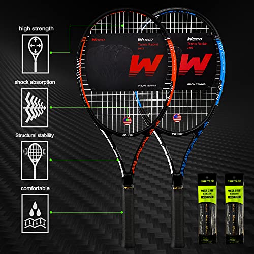 Adult 2 Player Tennis Racket Perfect for Beginner and Professional Players, 27” Speed Tennis Racquet Include Tennis Balls, Overgrips, Tennis Bag, Vibration Dampe, Cover
